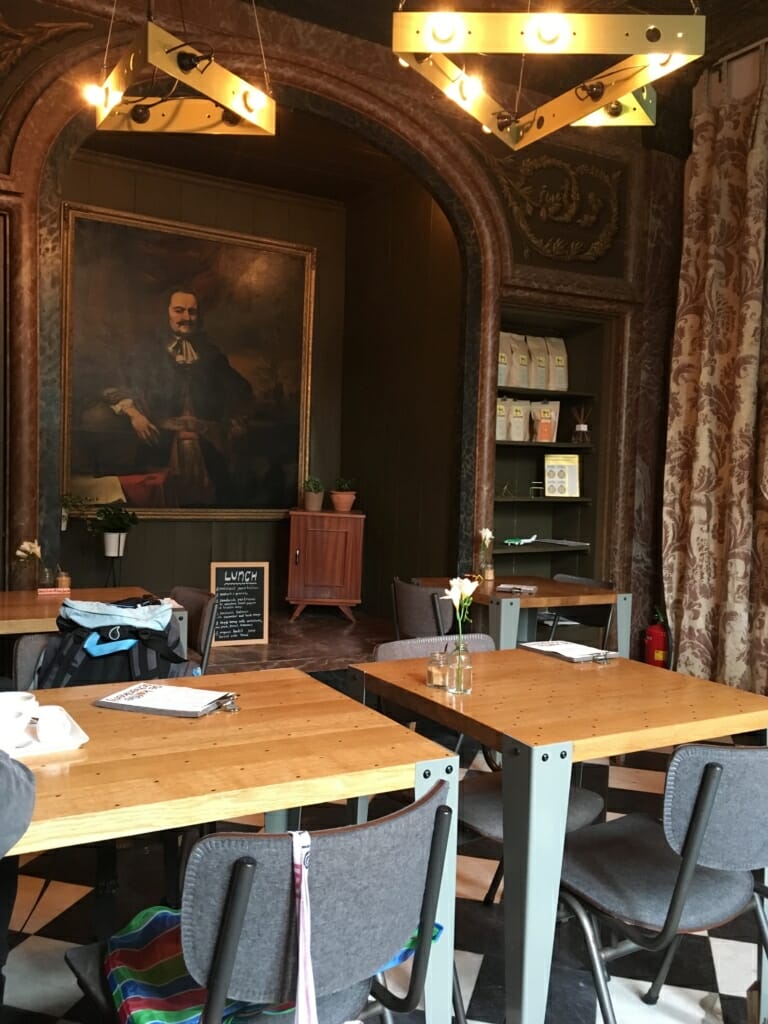 Niedliches kleines Café mit toller Ausstattung direkt hinter der Oude Kerk, dem ältesten Teil von Amsterdam. Früher befand sich in den Räumen des Café die Sakristei der Kirche. Es gibt Kaffee und Kuchen und andere Kleinigkeiten zum Amsterdamer Preisen.