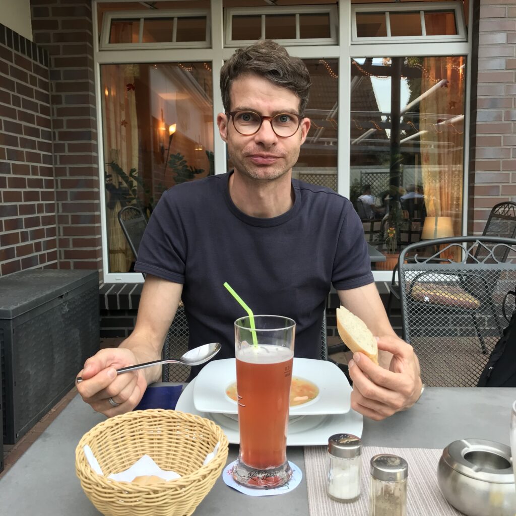 Die Begleitung hat eine klare Fischsuppe als Vorspeise, sowie Matjes als Hauptgang und war mit beiden Gerichten zufrieden. Ich hatte ein Schnitzel mit Champignons und Steakhouse Frites. Einfache Gerichte die sehr gute zubereitet waren.
