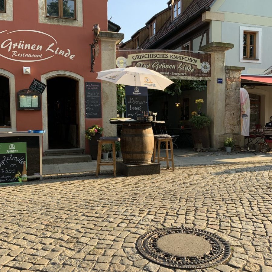 Zur Grünen Linde – da erwartet man eigentlich kein griechisches Restaurant. Der Zusatz „griechisches Kneipchen“ sortiert das dann gleich mal richtig ein. Sehr idyllisch am Anger in Altkötzschenbroda in Radebeul gelegen. Griechisch ist jedoch nur das Gyros auf der Speisekarte.