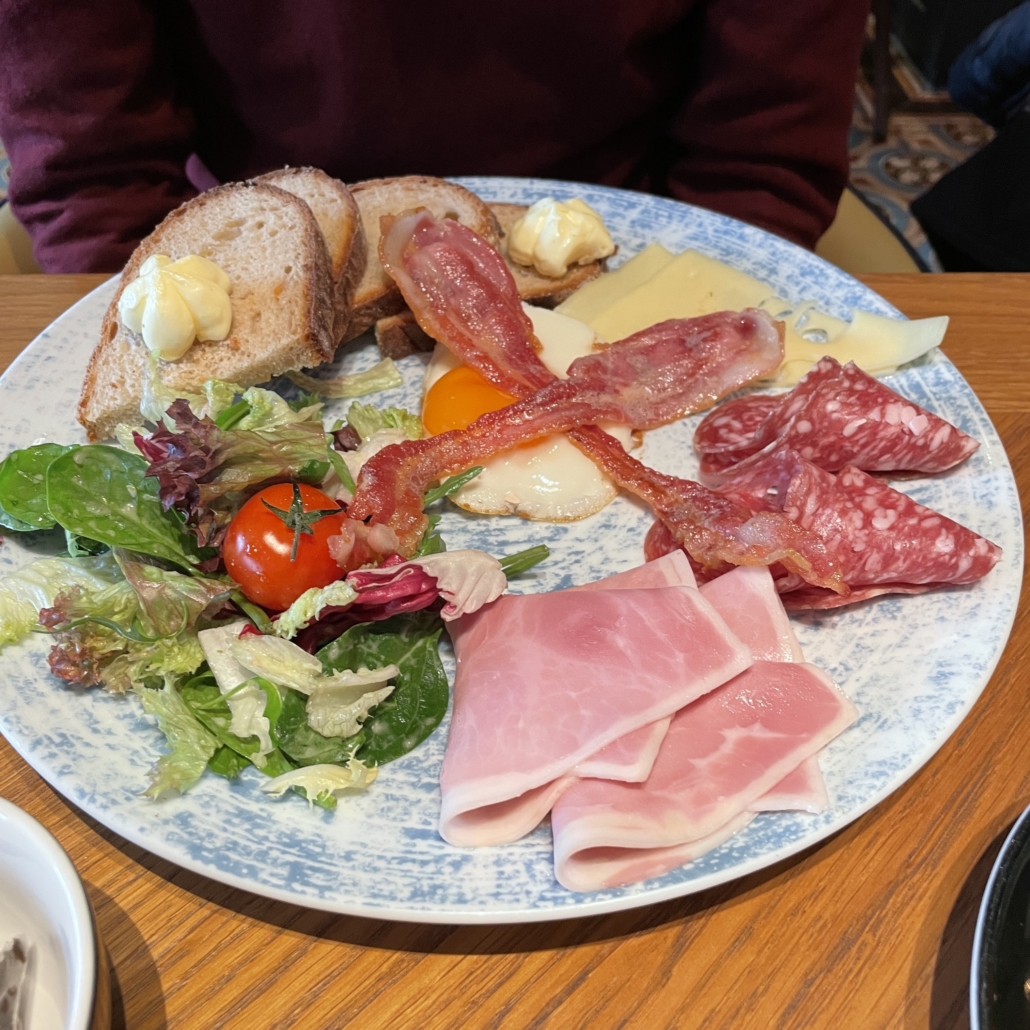 Die Frühstückskarte ist überschaubar – aber hey Eggs Benedict! Die Qualität der Speisen ist gut, die Aufmachung auf dem Teller könnte noch etwas mehr Liebe vertragen. Die Karte hält eine Menge Leckereien bereit, u.a. gerüffelte Pommes oder frische Pfannkuchen. Auch die selbstgemachte Limonade hat was, Apfel-Rose ist mein Favorit.