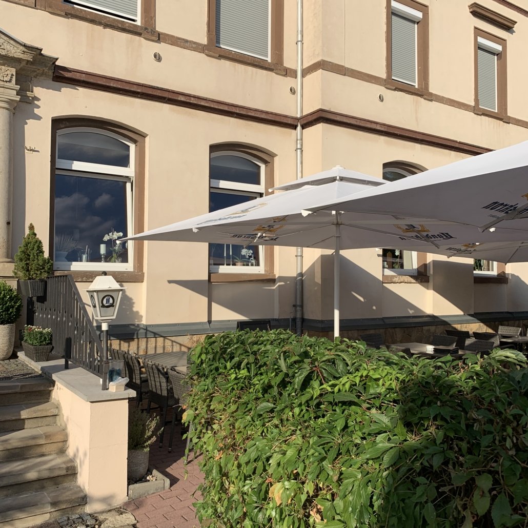 Beim letzten Besuch saßen wir draussen auf der Terrasse. Die liegt zwar an der Straße, die aber wiederum im Laufe des Abends immer ruhiger wurde. Coronabedingt stehen weniger Tische draussen, das hält gackernde Nachtische aber etwas auf Abstand.