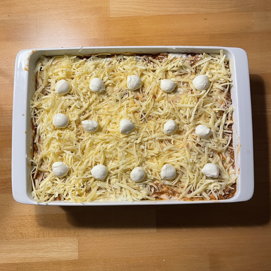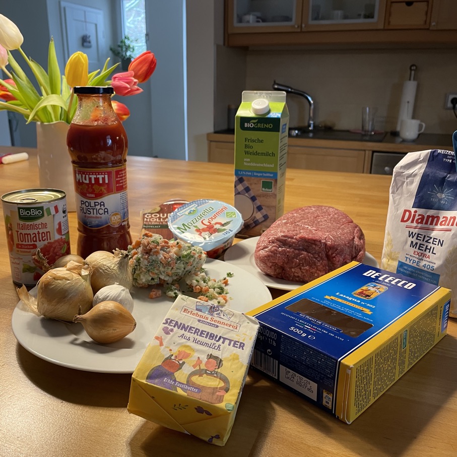 Meine Lasagne al forno, ein vielfach erprobtes und verfeinertes Gericht in diesem Haushalt. Es braucht Zeit und Geduld. Ich mache Lasagne grundsätzlich in größerer Menge. Zum einem weil mit der Geschmack durch das langsamere Garen runder erscheint und zum anderen klassische Vorratshaltung. Einfrieren ist kein Problem.