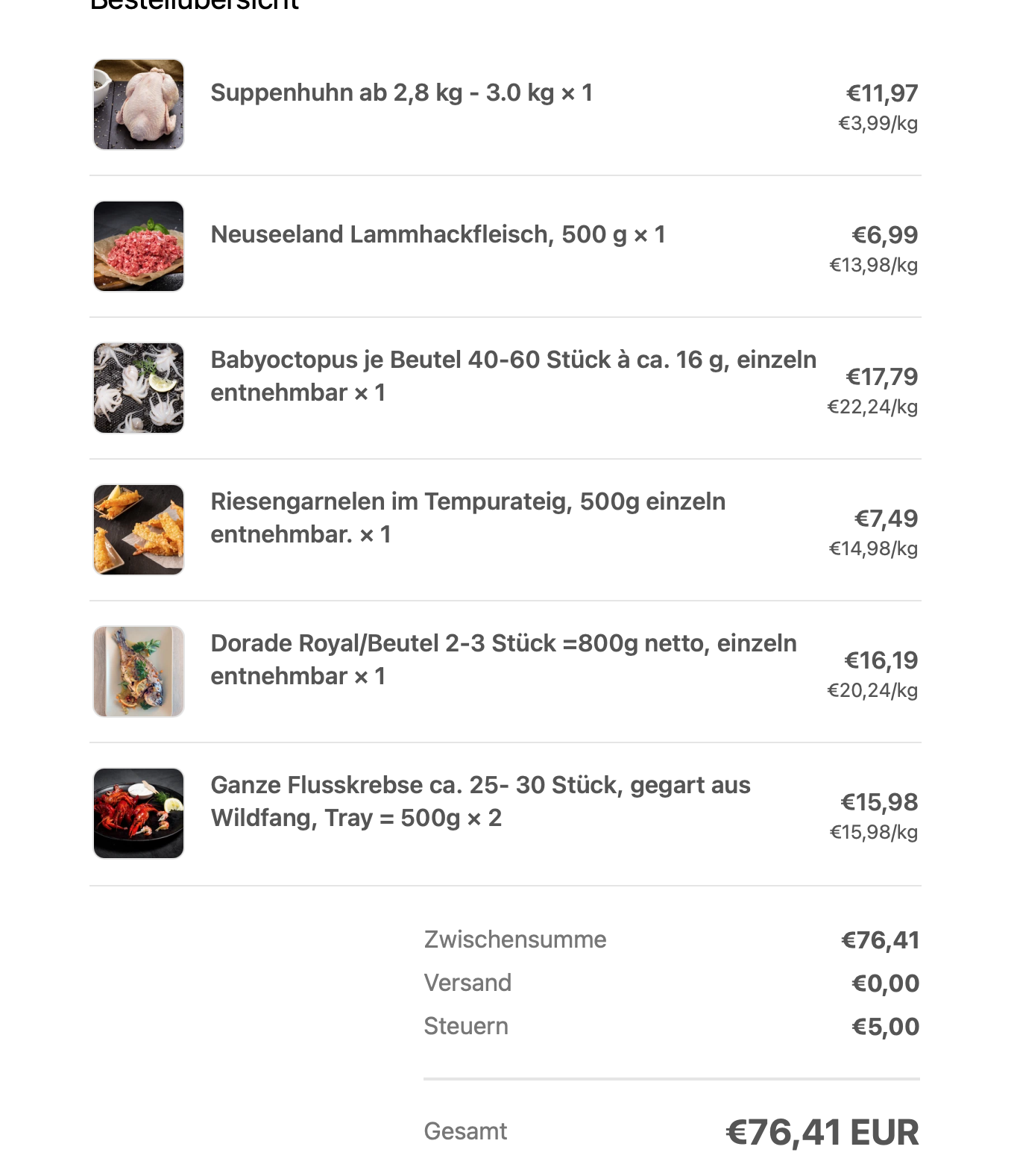 Auf der Suche nach Flußkrebsen bin ich auf die Seite von Teller-Mitte aus Hamburg gelangt. Das Sortiment geht über den Fleischversand hinaus und hat eben auch Fisch und Meeresfrüchte im Angebot. Ich bin ja ein großer Fan von Schalentieren und habe mich gefreut das auch da eine Auswahl existiert.