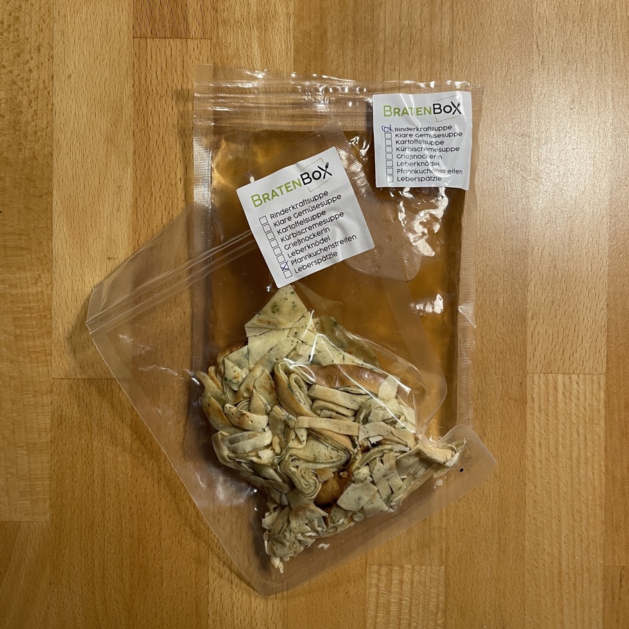 Aller guten Dinge sind drei. Bei dieser Bestellung bei der BratenBox gab es eine Wiederholung und zwei Vorsuppen.