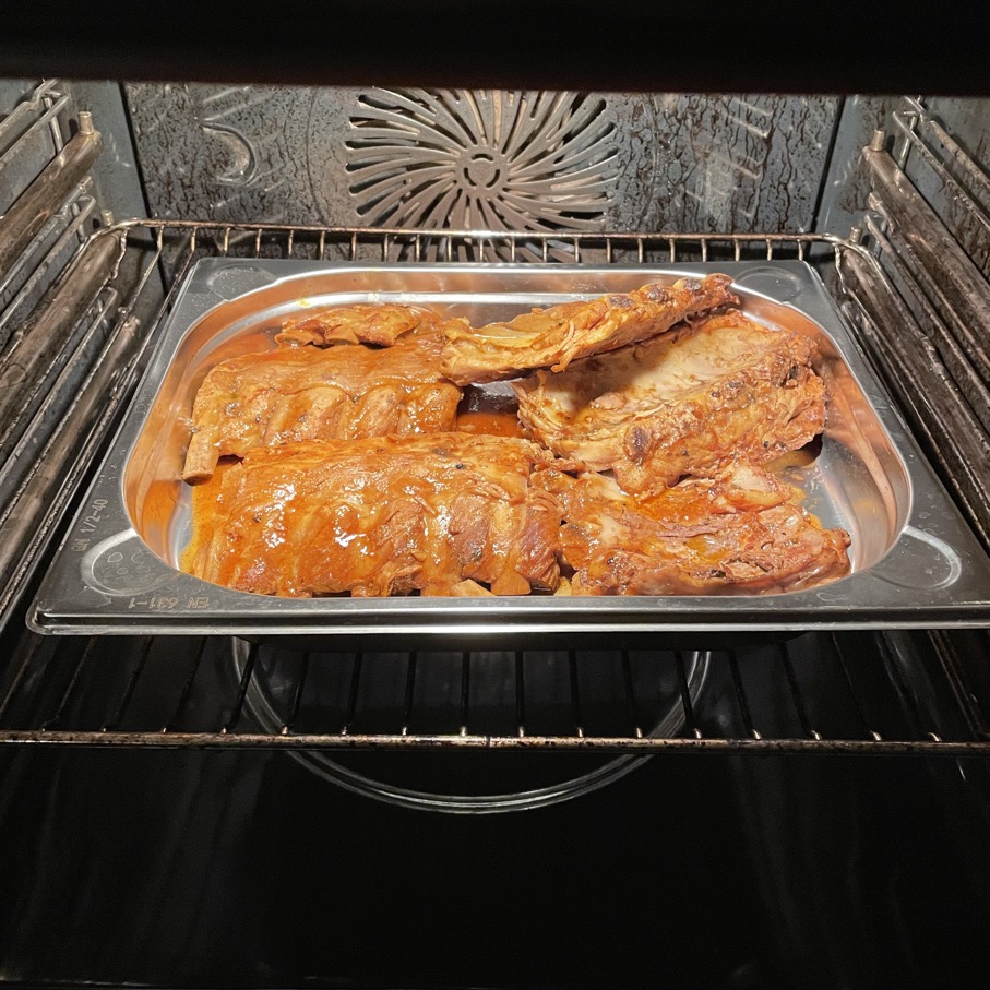 Ich wollte unbedingt noch mal die Rippchen essen. Sie waren genauso lecker wie beim ersten Mal, wenn es überhaupt was meckern gibt, dann das dieses Mal die Rippchen sehr unterschiedlich in der Dicke waren. Die Dickeren hätten noch ein paar Minuten länger im Ofen bleiben können. Luxusprobleme…