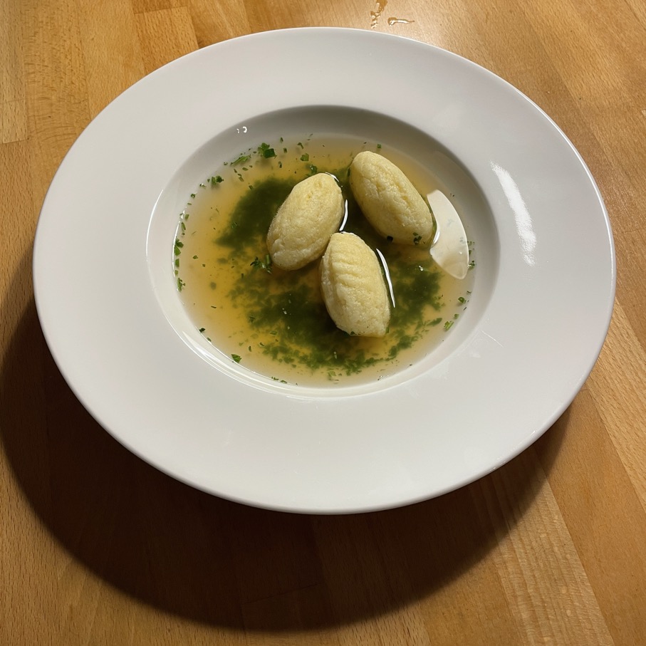 Die Grießnockerl waren schön grießig und locker. Ein schöne Vorssuppe.