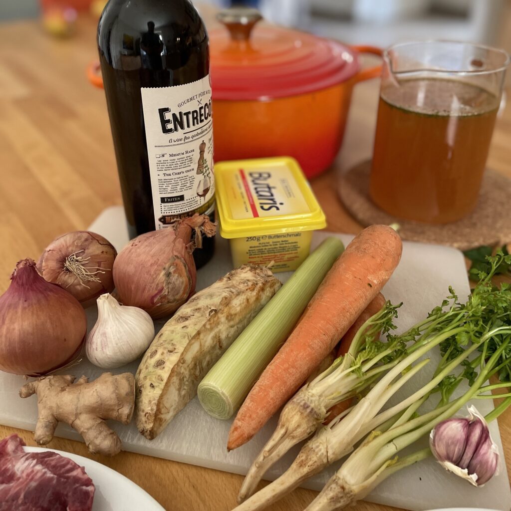 - Knochen (sind nicht zwingend notwendig aber gut für den Geschmack)
