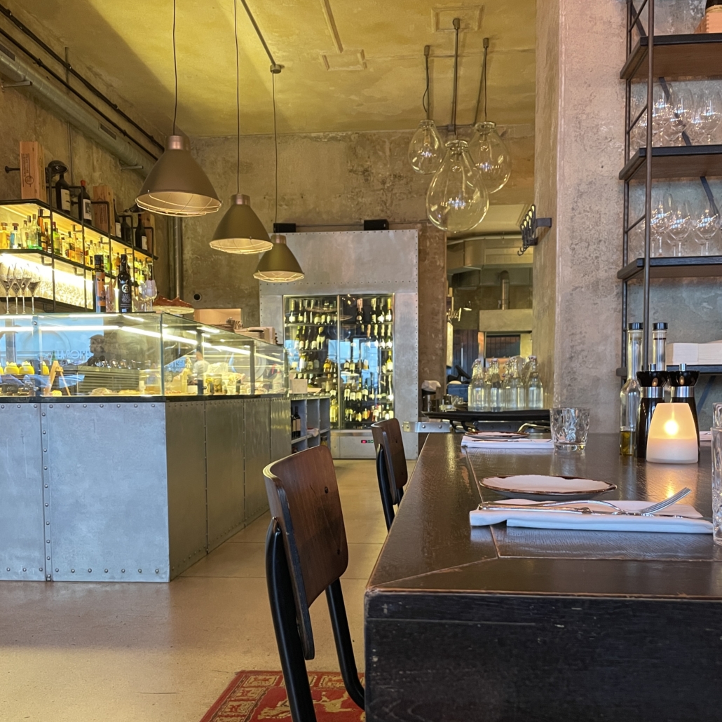 Die innere Ausstattung entspricht dem Zeitgeist und hat uns gut gefallen.Wir hatten einen Tisch, der mir persönlich etwas zu nah am Eingang war, das störte im weiteren Verlauf aber weniger.
