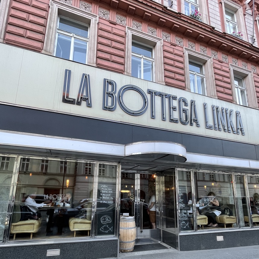 Für den zweiten Tag unseres Prag-Aufenthalts suchten wir uns das Restaurant La Bottega Linka aus – laut Selbstbeschreibung mit italienischen Einschlägen (es gibt aber keine Pizza). Das Restaurant befindet sich in einem ehemaligen Ladenlokal. In den Schaufenster-Nischen waren auch Sitzplätze, das war von innen und außen ganz lustig anzuschauen.