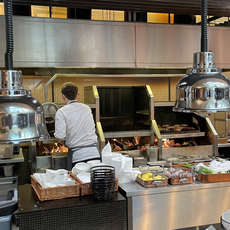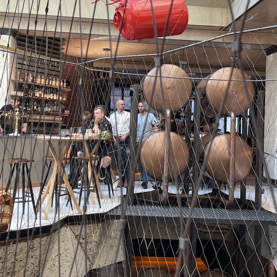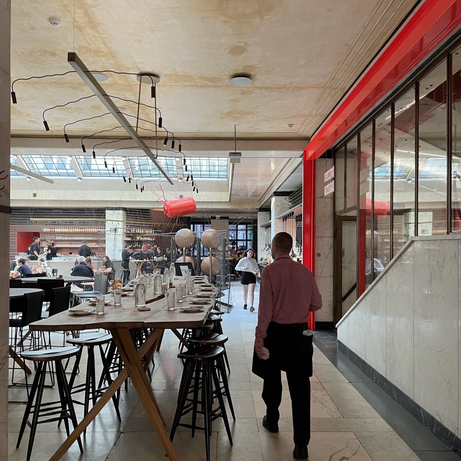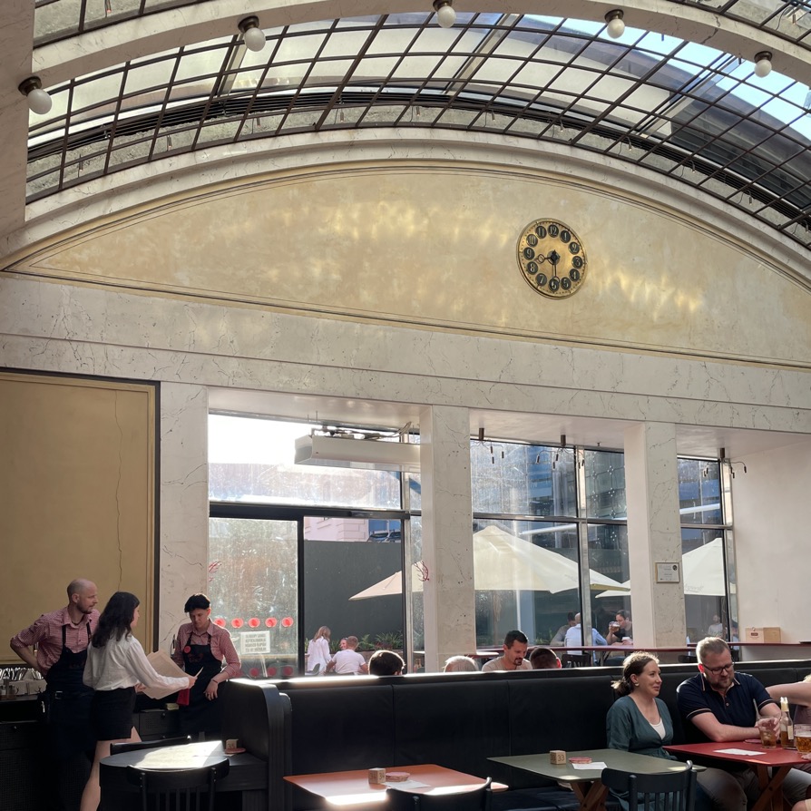 In einer ehemaligen Bank wurden zwei Restaurants und eine Hausbrauerei untergebracht. Interessantes Flair, hatte aber ein bisschen was von Bahnhofshalle – es war viel Bewegung im gut besuchten Restaurant – vor allem auch in Gruppenstärke. Draussen sitzen war auch möglich.