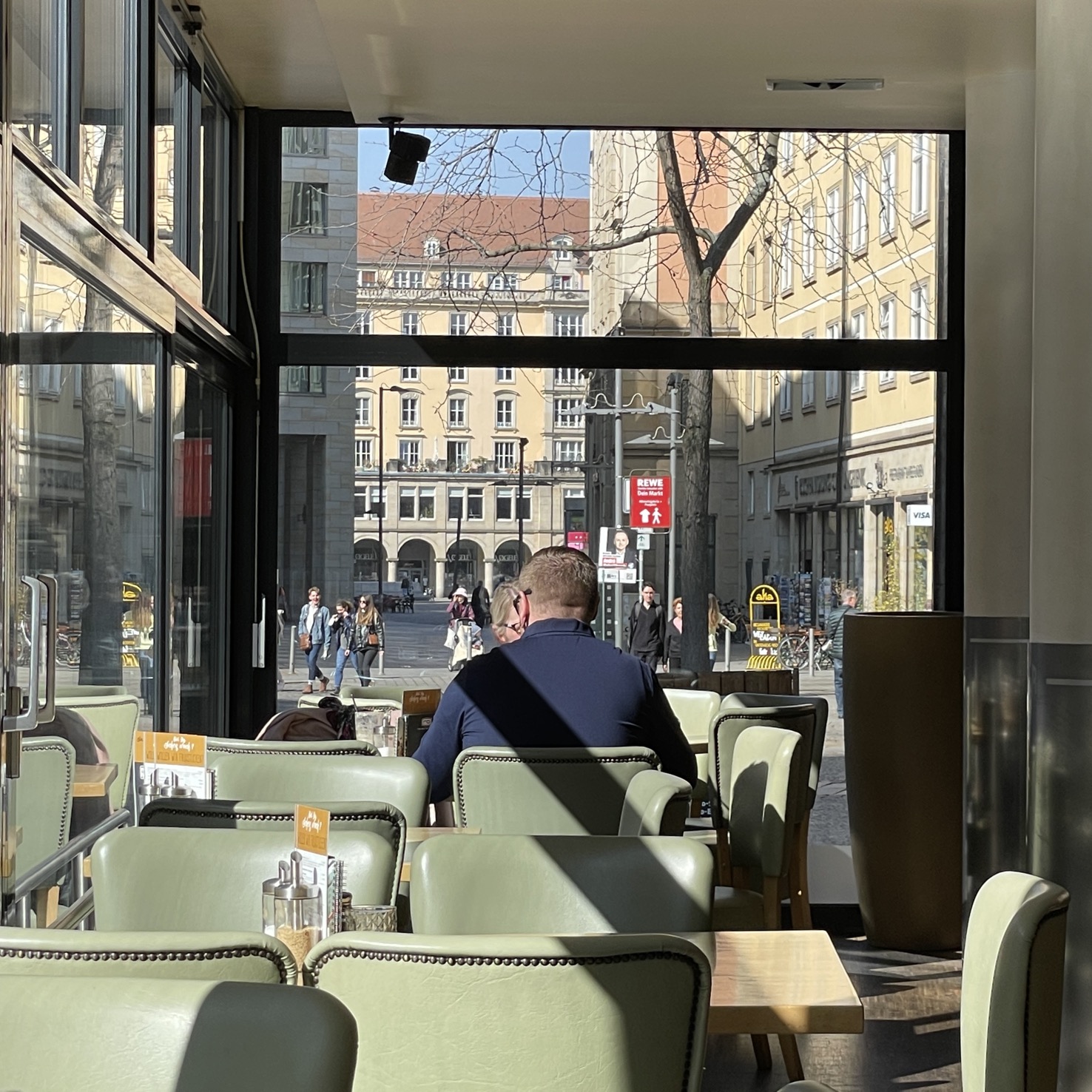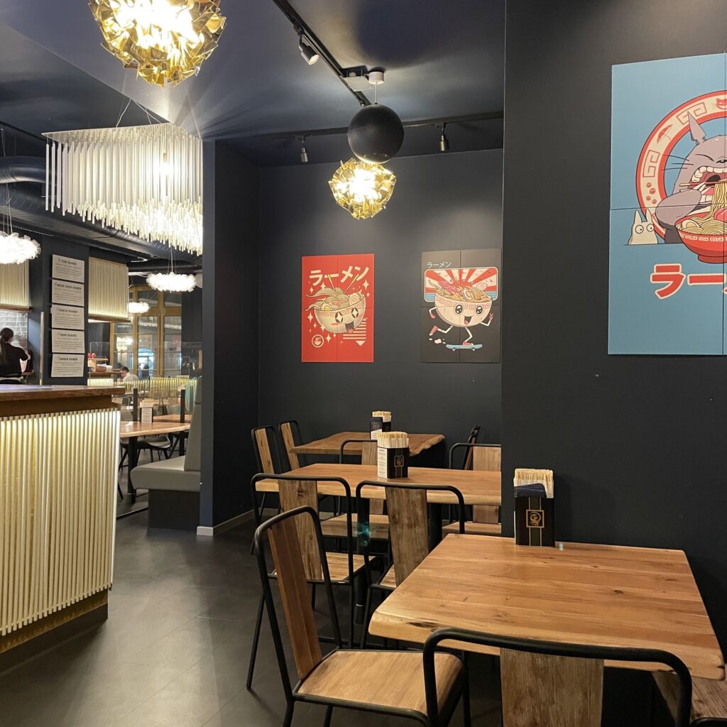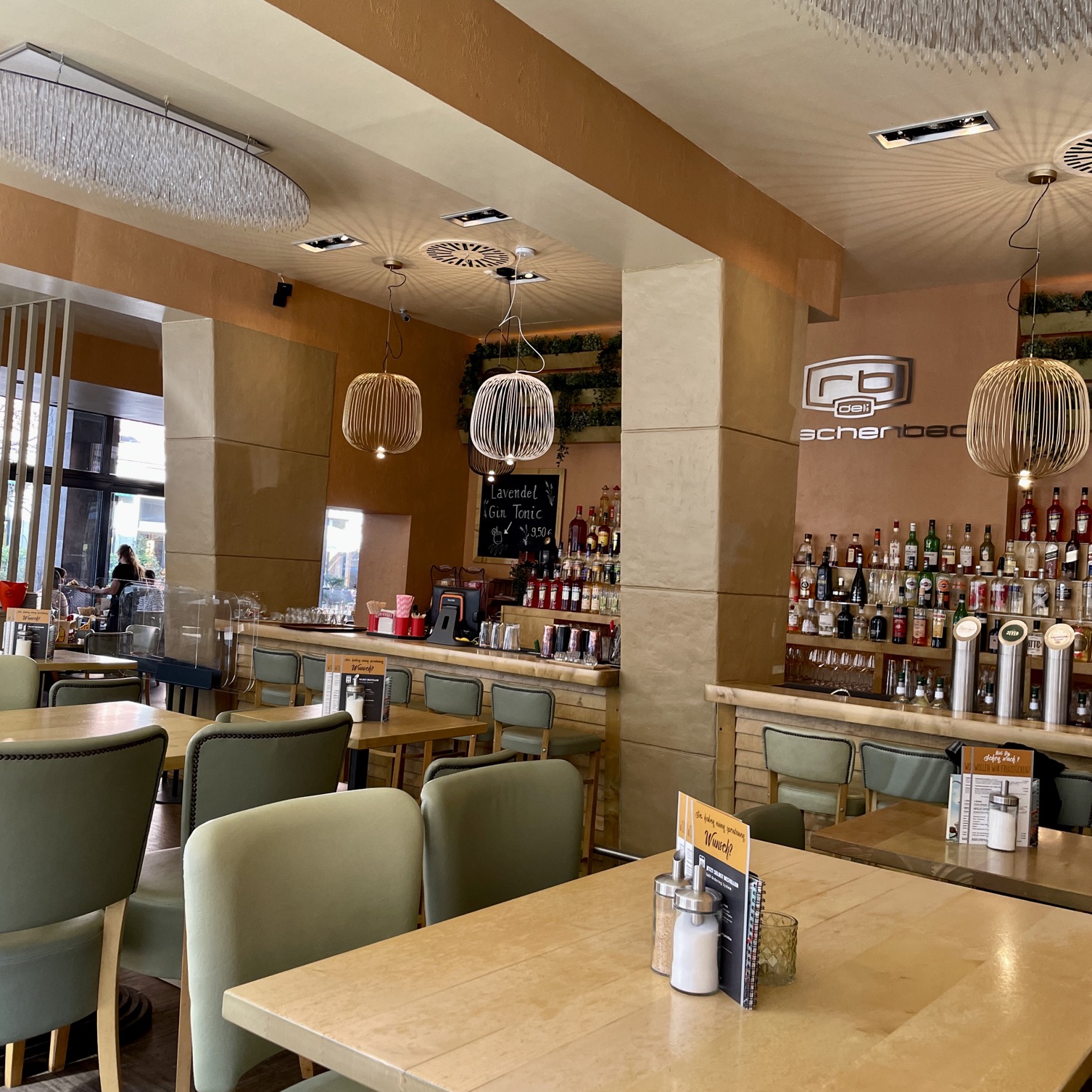Ich hatte im Vorfeld nicht so genau hingeschaut wo das Restaurant eigentlich genau liegt von aussen nicht unbedingt einladend aber wir wollen ja Essen gehen und keine Umfeldstudie betreiben. Wir waren pünktlich, und bekamen flott unseren Tisch zugewiesen. Ruhig war da leider nichts, direkt vorm Tresen und der Essens-Ausgabe. Ein anderer Tisch fand sich nicht, das wirklich riesige Restaurant war voll. Das Ambiente gefiel, es unterschied sich wirklich wohltuend von den sonstigen Tavernen-Simulationen.