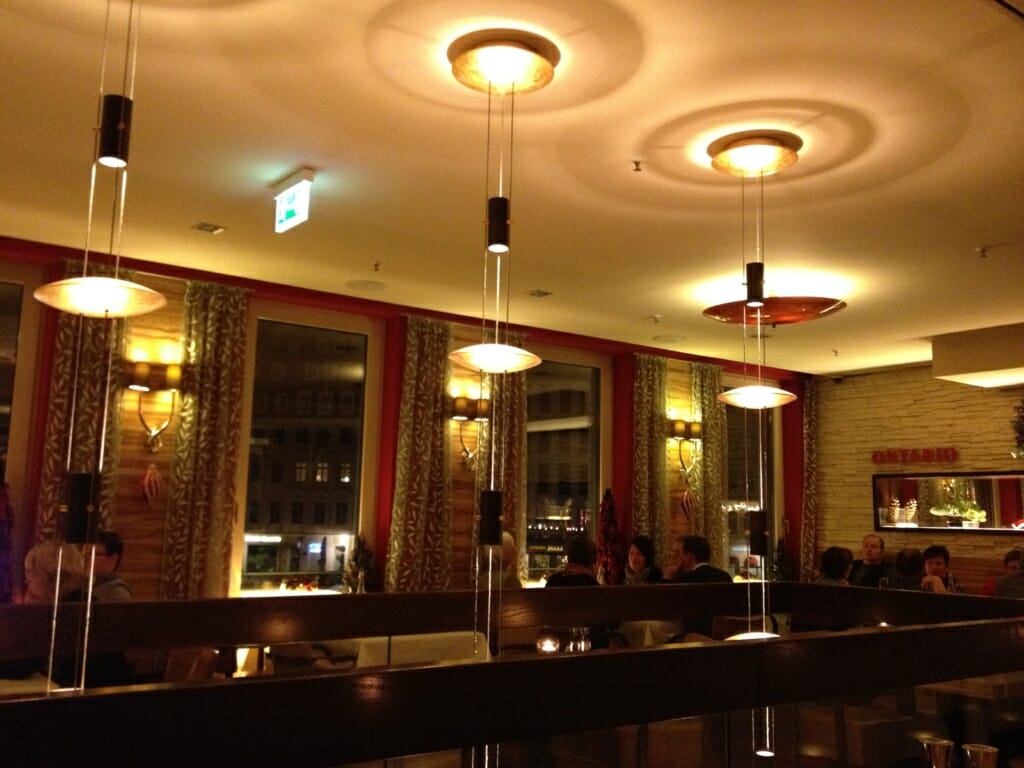 Zum Ontario habe ich ein etwas ambivalentes Verhältnis. Ich mag die Einrichtung und das Ambiente dort sehr gerne. Man sollte sich für einen Tisch in den oberen Etagen entscheiden, unten ist es eher laut wegen des Eingangsbereiches. Ich mag die kleinen Tische an denen man zu zweit und nebeneinander sitzt.