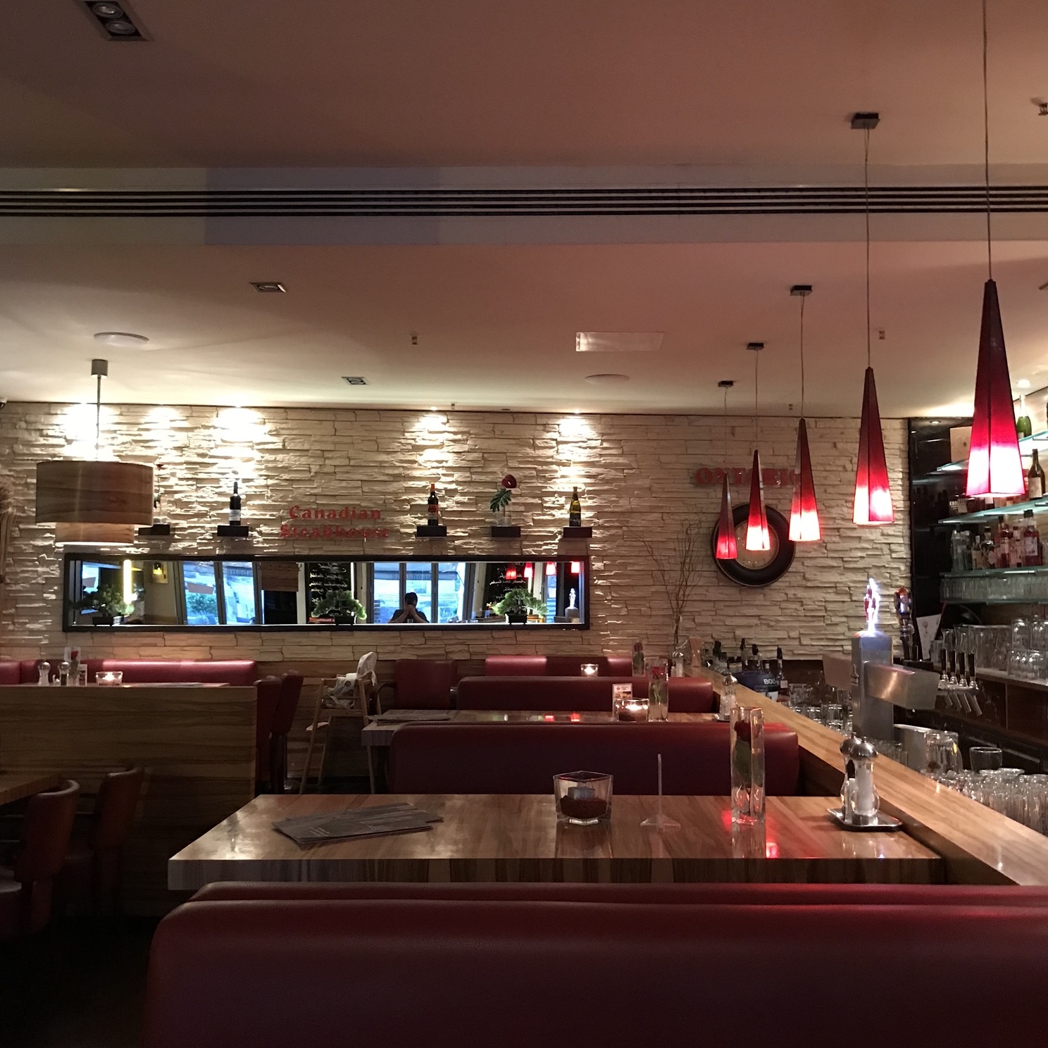 Wir waren einige Male Weihnachten dort Essen. Es spielte eine Klavierspieler entsprechende Musik, was für sich genommen schon eine schöne Untermalung war aber zusammen mit der ziemlich lauten Bar und dem üblichen Stimmenwirrwarr war das schon eher sehr laut. Ein Tisch für eine spätere Uhrzeit bringt im Ontario was es ist einfach ruhiger.