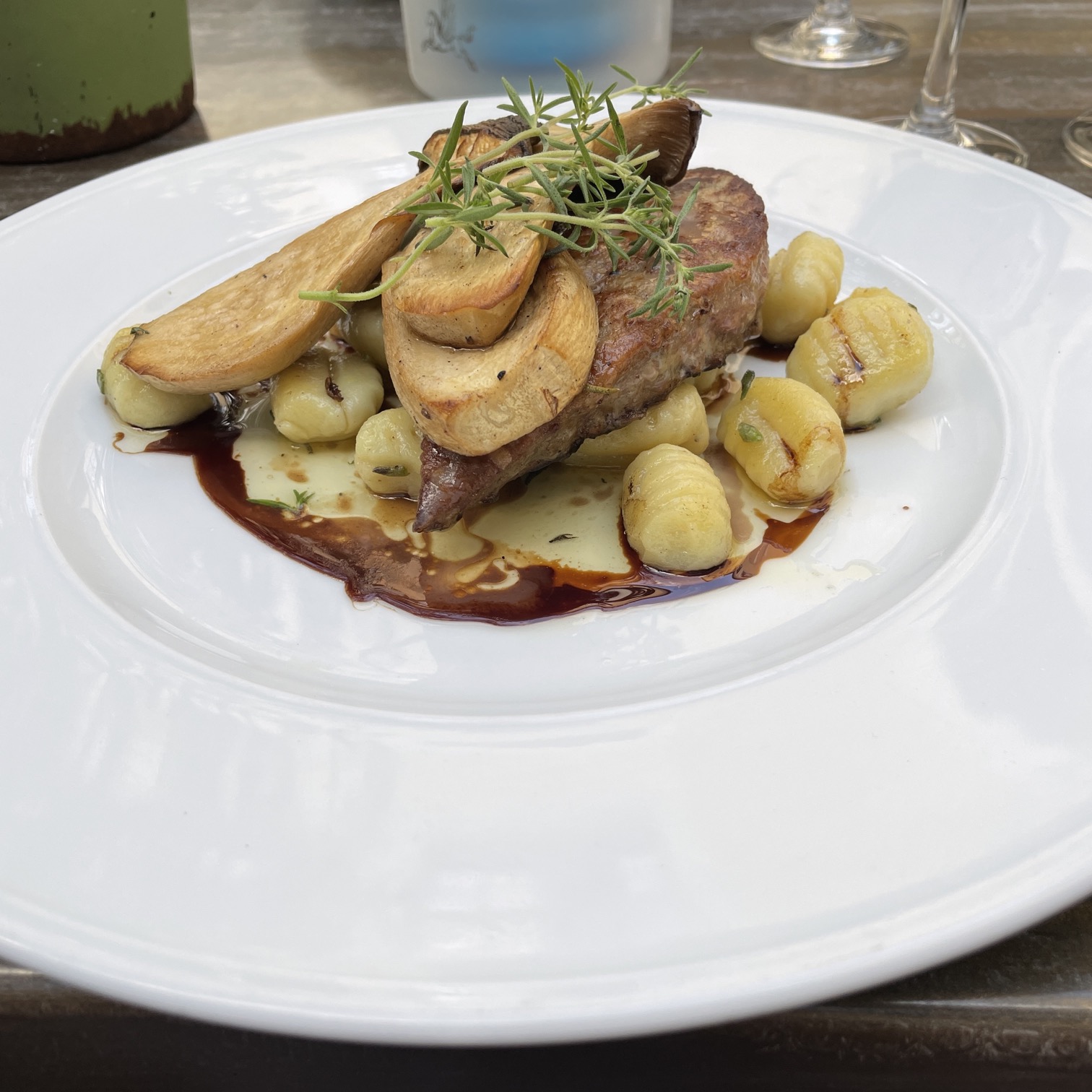 Wir hatten keinen weiten Weg zum Pensions-Bett, wir leisteten uns eine Flasche fruchtigenfrischen Weisswein aus der französischen Cassagne. Als Vorspeise bestellten wir Crostini mit Leberpastete, ich wäre tatsächlich nicht auf die Idee gekommen das bei diesen Temperaturen das Brot warm geröstet serviert wird.