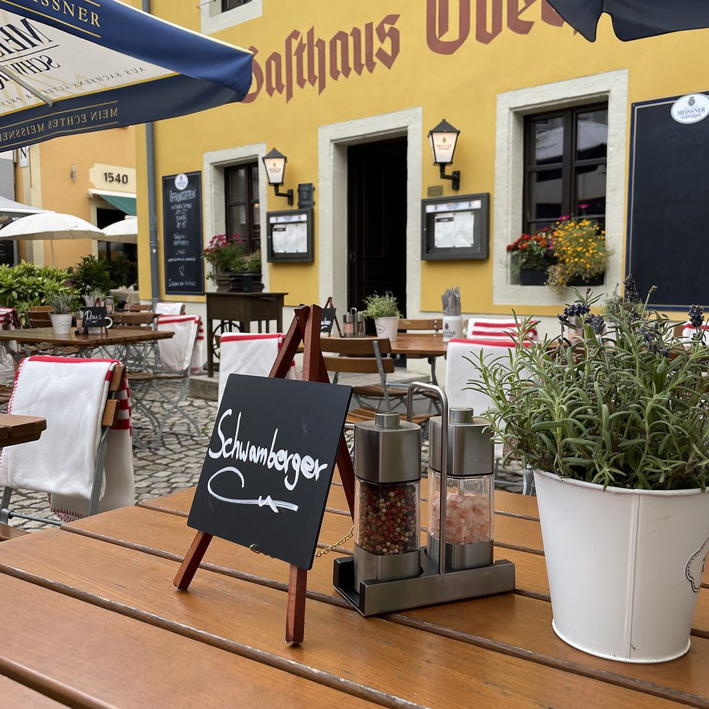 Wir hatten uns ein Jahr Zeit gelassen bevor wir uns nach dem Betreiberwechsel wieder in die Oberschänke trauten. Es waren – und soviel kann ich vorweg nehmen: sind – große Fußstapfen die da zu füllen sind. Wir hatten einen Tisch draußen reserviert, das Wetter passte.
