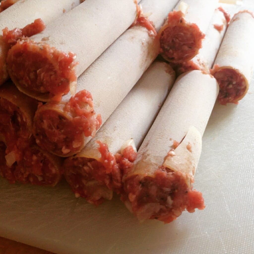 Brät von groben Bratwürsten als Füllung verwenden, spart Zeit und schmeckt fantastisch.